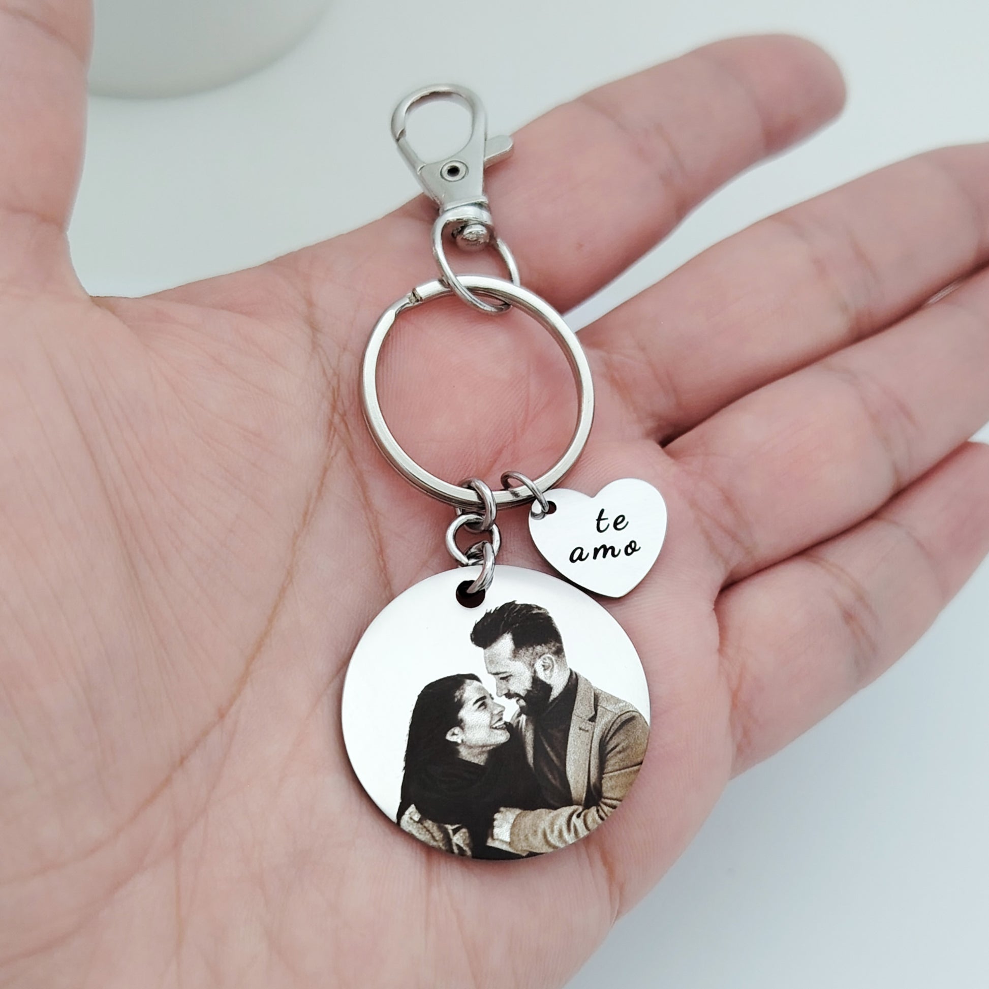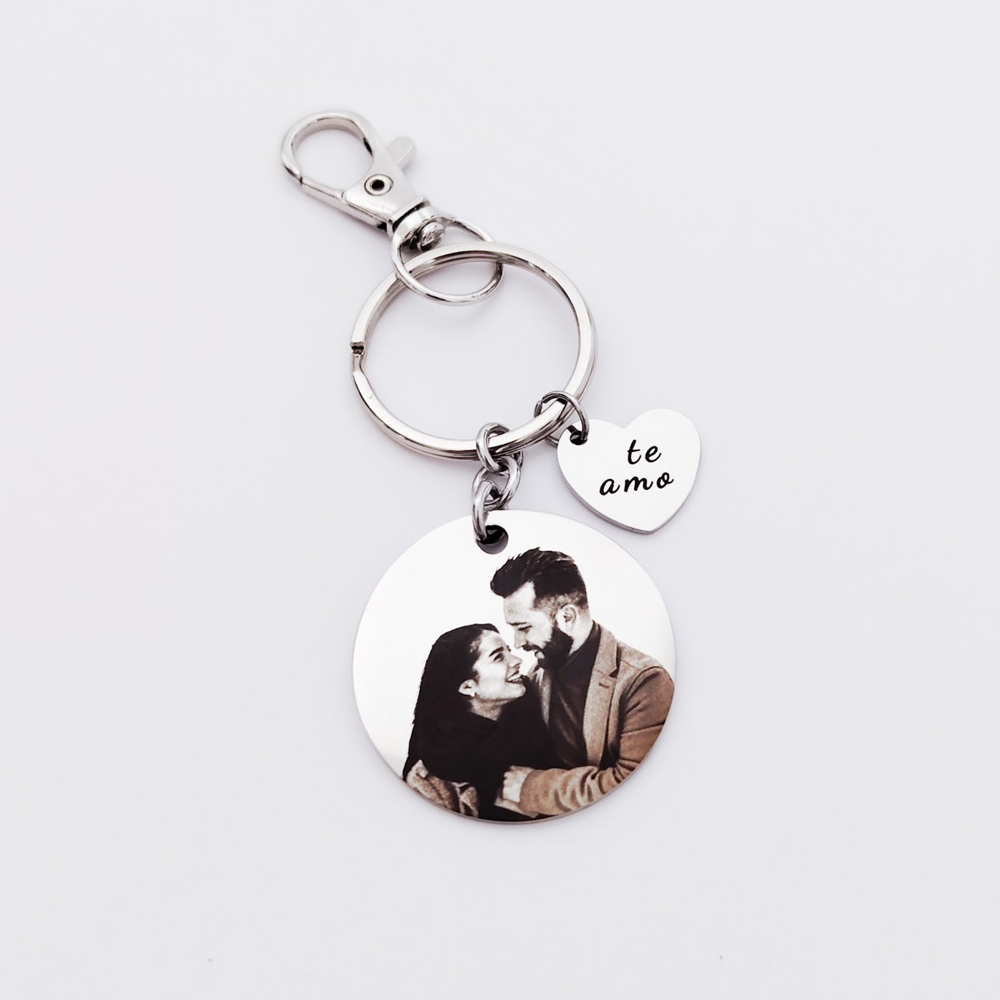 Llavero medalla con foto y dije corazón